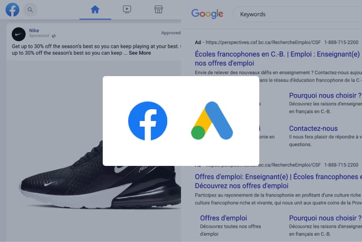 Prévisualisez vos annonces Facebook et Google dans leur environnement réel.
